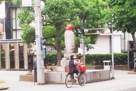近鉄小阪駅の改札を出て、左斜め前に進むと、お地蔵さんが見えます。そこを左に曲がります。